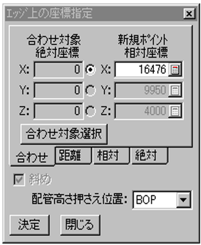 画面上に【エッジ上の座標指定】ダイアログが表示されます。