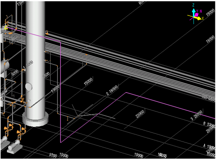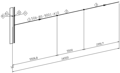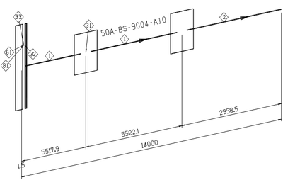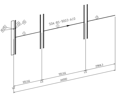 - ラインのある範囲内で、パイプ長さが定尺長に等しくなる様に、BW、ソケット、カップリング、フランジ(機能名称はFLGS)等を自動的に発生させる機能です。