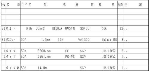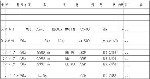 - 定尺長は、AGCNSTのD067(「EYEPIPE 配管材集・積算」の『パイプ,パイプニップル集計条件』【パイプの定尺長】参照)で設定します。