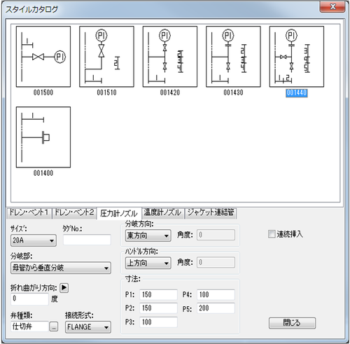 スタイルカタログに、PI等の計装品や配管付属品が含まれていて、バルブに直付されている場合はその計装品、配管付属品の接続形式はバルブと同じ接続形式にセットされます。