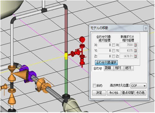 "配管"メニューの"パラメトリック配管入力"を選択すると、座標指定ダイアログが現れます。