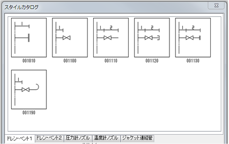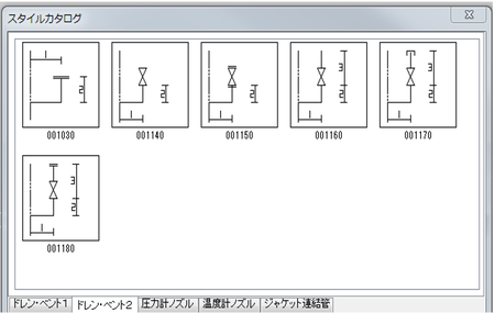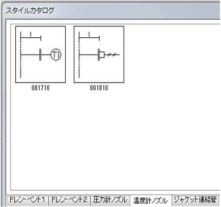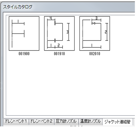“ドレン・ベント”,“圧力計”,“温度計”,“ジャケット連結管”の各パターンがあります。