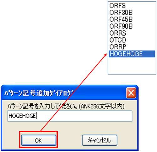 - 以下のパターン記号追加ダイアログが表示されるのでパターン記号を入力してOKボタンを押します。