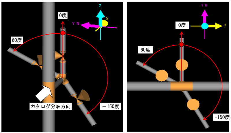 No. 分岐方向 分岐角度 1 水平または傾斜配管のとき ライン入力方向を親指とし、上を基準として、右ネジ時計廻りの角度 2 垂直配管のとき 北を基準として、右ネジ時計廻りの角度 -