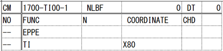 機能Code ポイントタイプ ベンド接続タイプ 曲率半径(式) セグ数 ポイントX座標(式) ポイントY座標(式) ポイントZ座標(式) 配管高さ押え位置 部品押さえ位置 Tag No. 1 830 0 0 0 0 0 0 0 0 0 2 57 0 0 0 0 0 0 @PS+P1/2 0 11 3 2101 0 0 0 0 0 0 @PS+P1 0 11 4 57 0 0 0 0 0 0 @PS+P1+P2/2 0 11 5 430 0 0 0 0 0 0 @PS+P1+P2 0 11