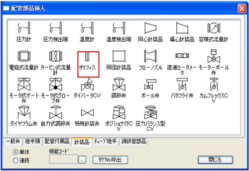 - 配管ラインを左クリックするか、一覧ウインドウから挿入したい配管ラインを選択し、一次選択状態にします。