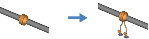 - [OK]ボタンをクリックすると、設定した条件で二次選択状態の配管に、選択したパターンの配管ラインが挿入されます。