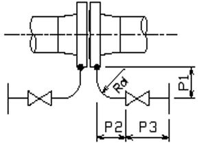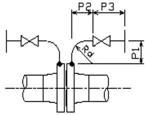 直付け処理が実行されるので、例えば仕切弁が母管表面+P1の位置に配置されるとは限りません。