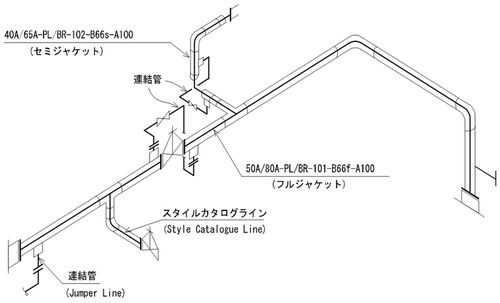 - 一本の配管ラインの途中で、ジャケット管からシングル管に変化できないので、別図処理を行って下さい。