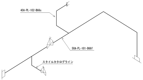 - 連結管(Jumper Line)の入力は、カタログラインの挿入で行いますが、スペッククラスはシングル管のスペックにして下さい。