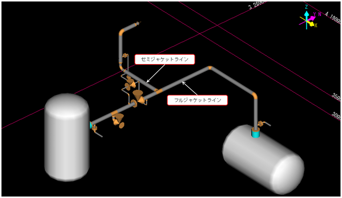 2重管のフルジャケット配管出力事例