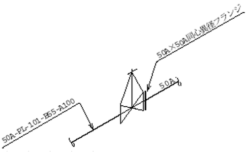 別図処理後に同心異径フランジでスペックチェンジを行います。同心異径フランジを選択後、シンボル後で同心異径フランジ以降のクラス(A24)を設定します。