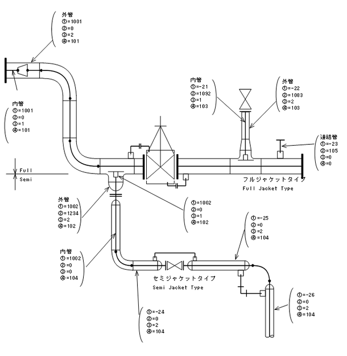 2重管のセミジャケット配管出力事例