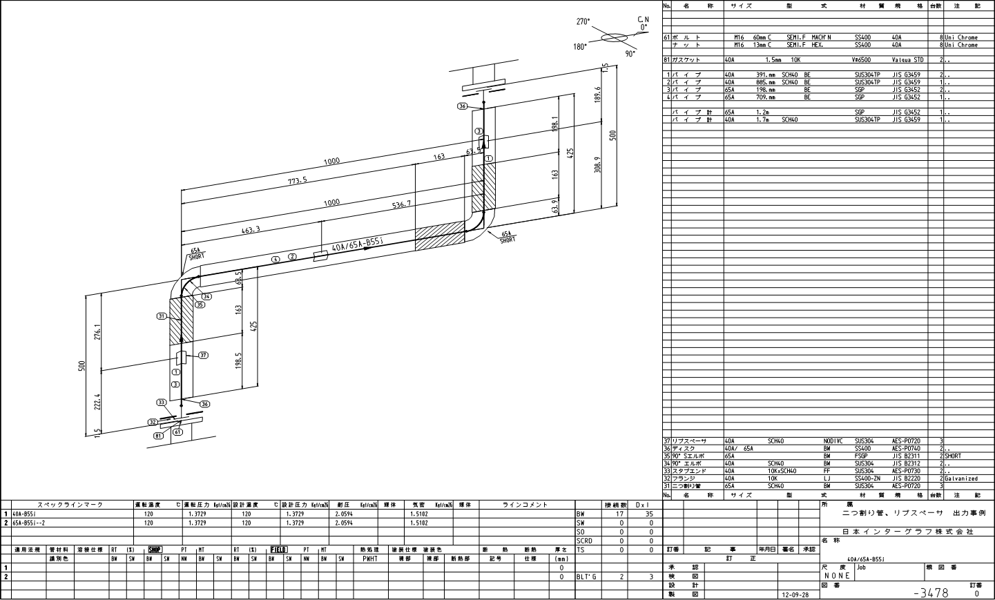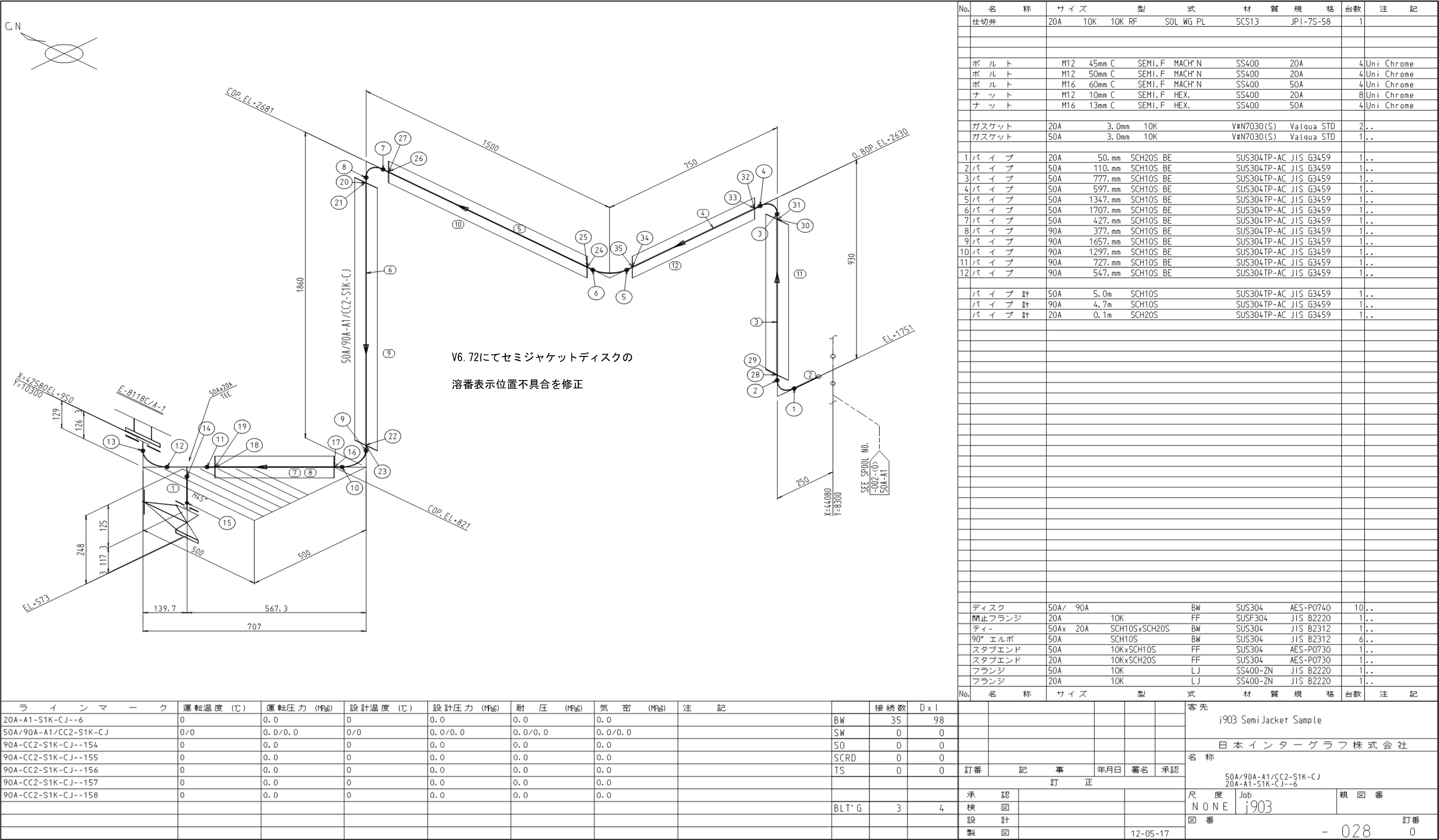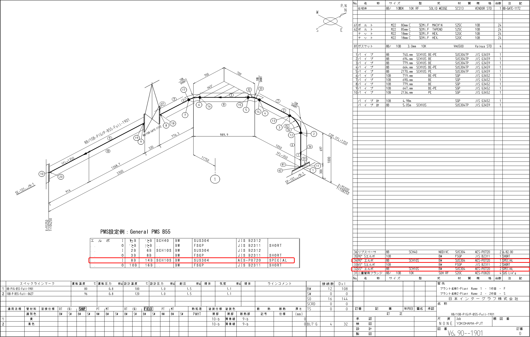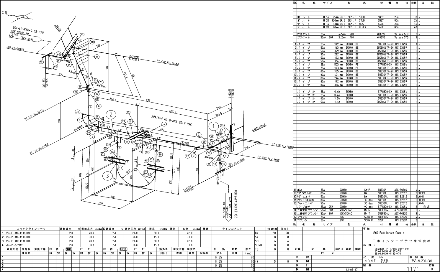 - 基本的に一本の配管ラインの途中で、ジャケットのスペッククラスとシングル管のスペッククラスのクラス変更をすることはできません。
