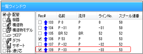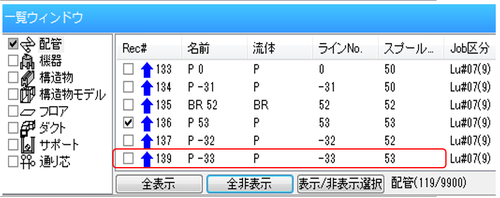 - 一覧ウィンドウから二重管外管のチェックを外し、内管のみ表示させます。
