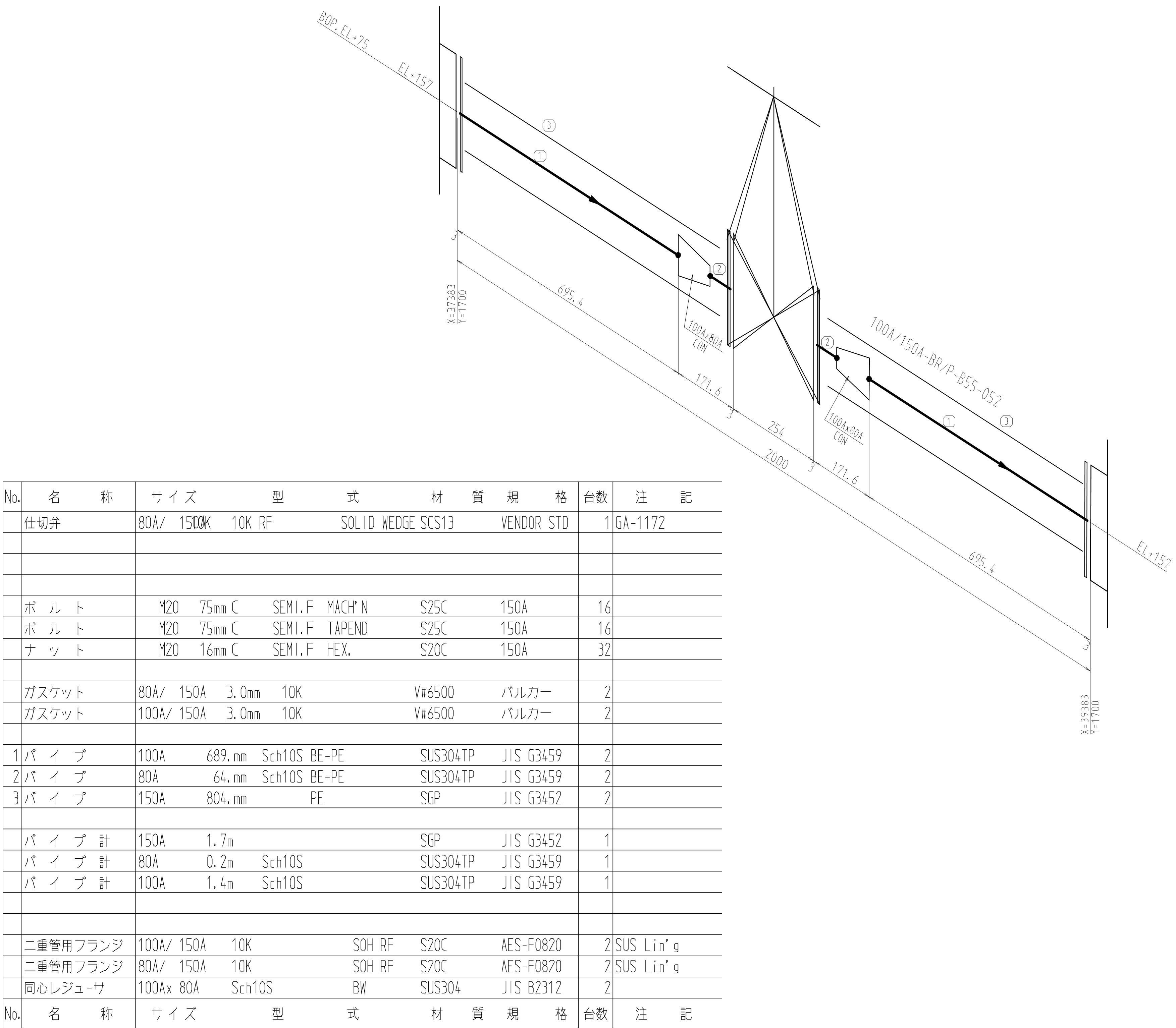 2重管一般弁廻り配管入出力事例