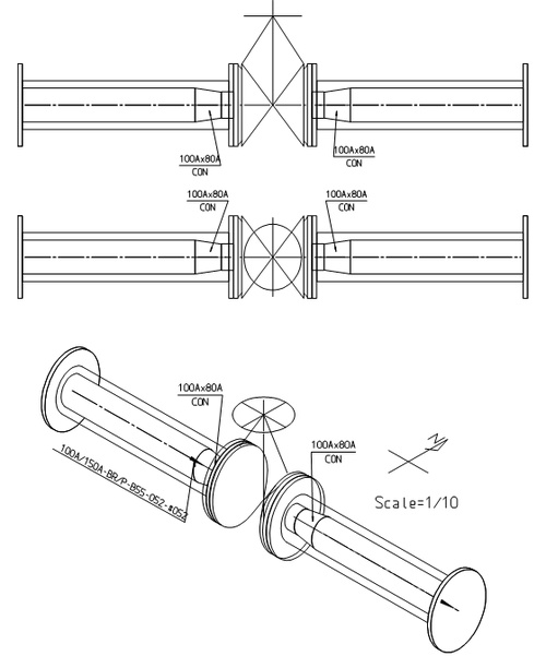 Full Jacket配管で Valve:80A/150A の両側直近に 内管だけ 80A→100Aに拡張させた事例