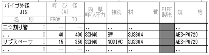 - 配管タイプCodeが下表のタイプになっていることが必要です。EYESPEC プラント属性、PMS設定」を参照してください。