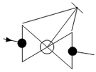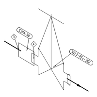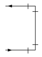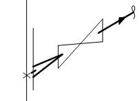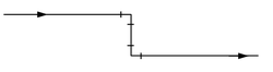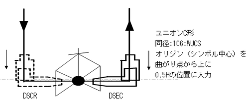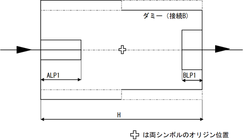 入出の接続形式の異なる部品については、シンボルを本体部分とダミー部分に分けて、それぞれを以下のように下流側のオリジンを0.1mm下流側にずらして入力し、両部品の下流の端点を合わせるため、下流側の部品の端端長をH-0.2mmに設定します。