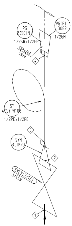| 接続表記順 | 異径継手類の場合は口径大側x小側 | 同径継手類の場合はCode値小x大 | 弁類の場合は流れ順(1次側x2次側) | 弁類の場合は流れ順 | |||||