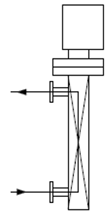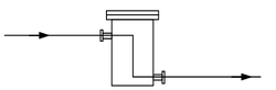 流れ方向に対して手前側のエルボの部分に本体を入力する。 |