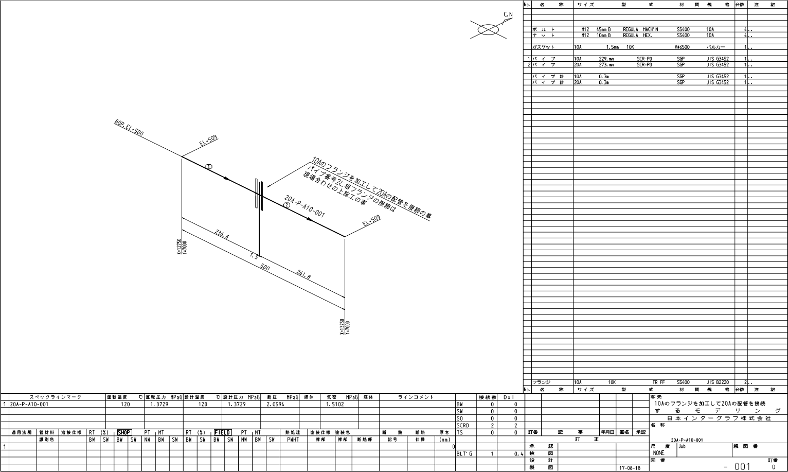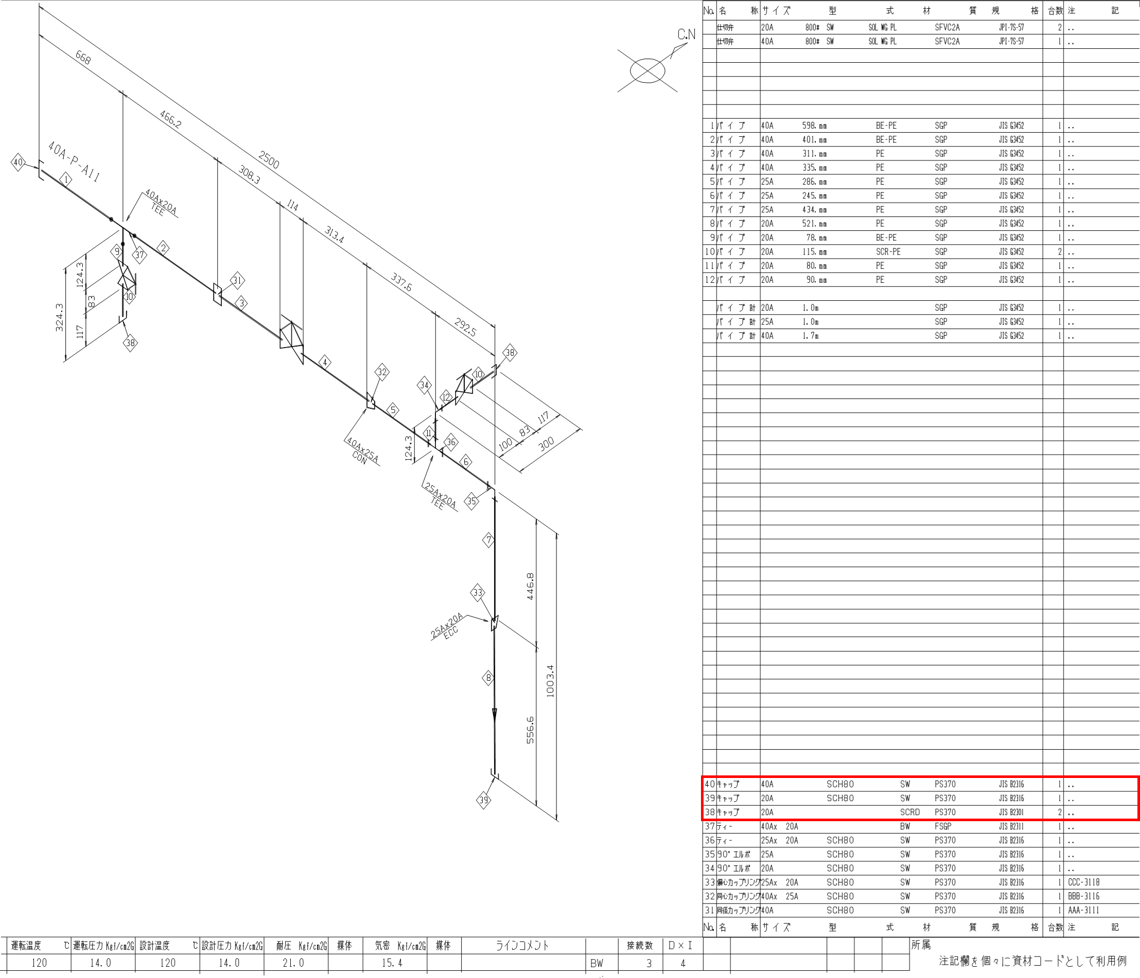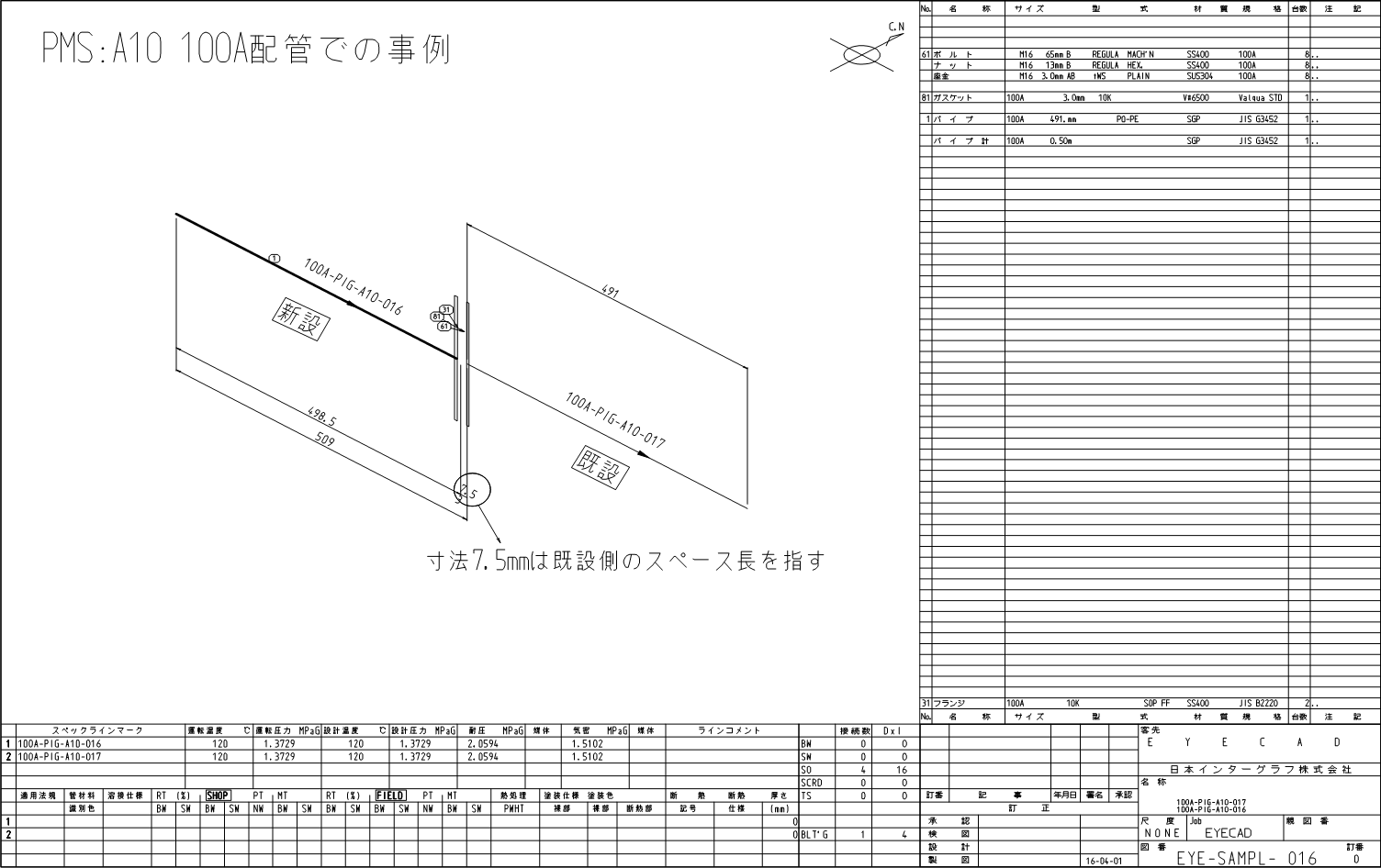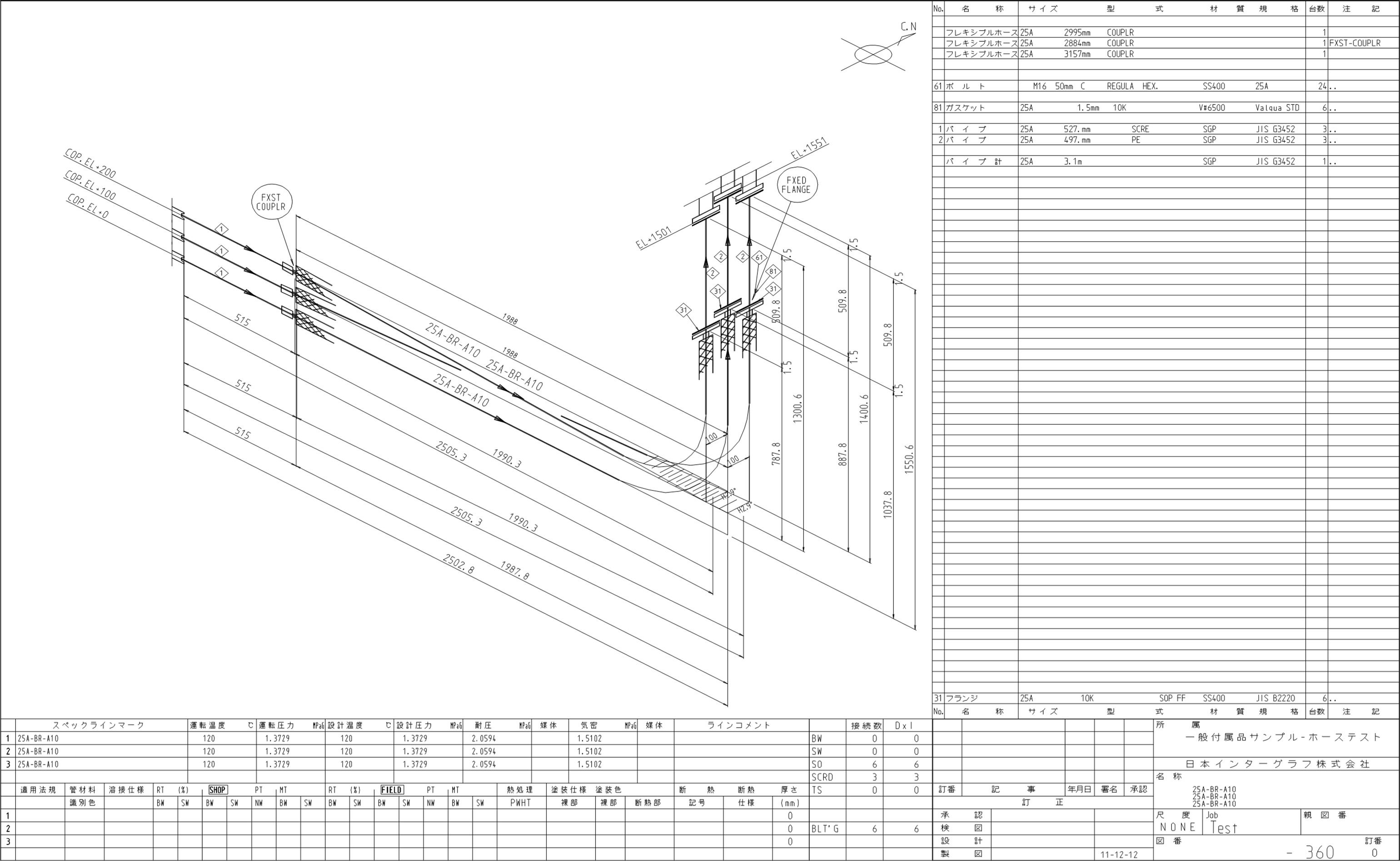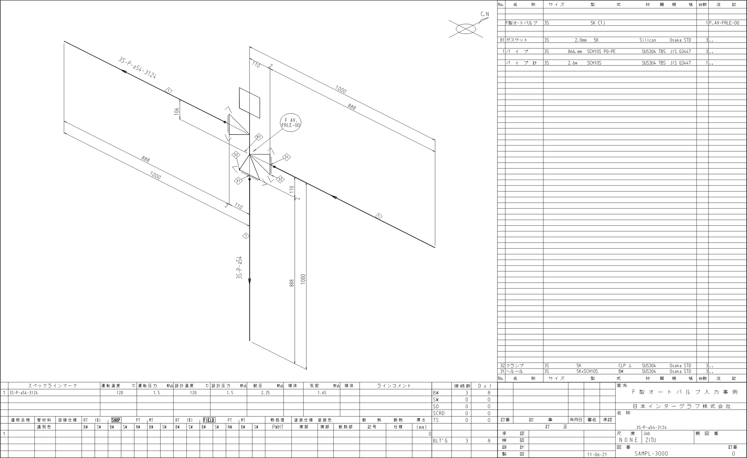 サンプル配管スプール図