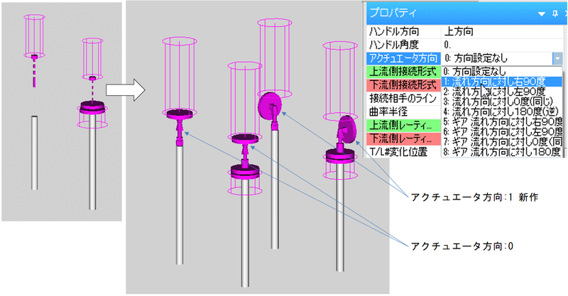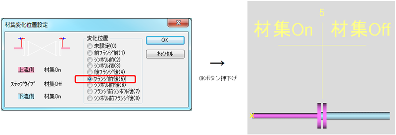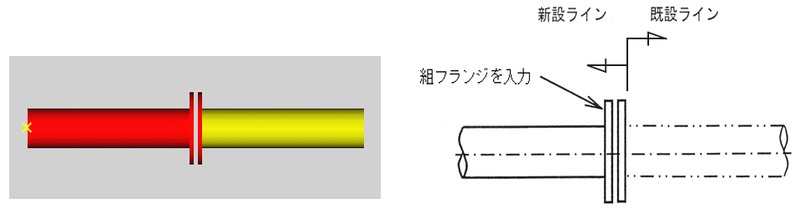 フランジ接続タイプの部品の入出にこの接続変化を設定しますと、そこに相フランジは発生しないようになります。