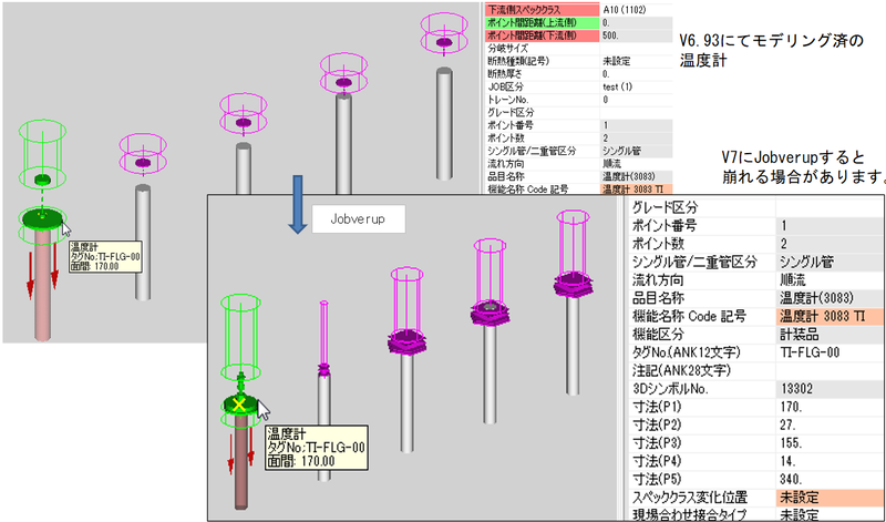 従来、入出で接続形式の異なる部品に対しては、このPageの様に入側と出側で別々の(片方がダミー)の部品を組み合わせてモデル化していましたが V10.00より、次Pageに示すように、「接続変化」の機能が新たに用意されたので、ほとんどの接続形式が変化する部品はこれを使ってモデル化できるようになりました.