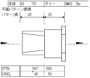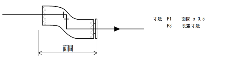 | 片重長 | LP1 | 70 | 本体の接続形式に該当する片重長 | 中前端長 | P3 |