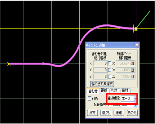 V9.10では曲がり部品に接続変化設定する場合、接続形式がBW:1632以外の接続変化を選択できません。