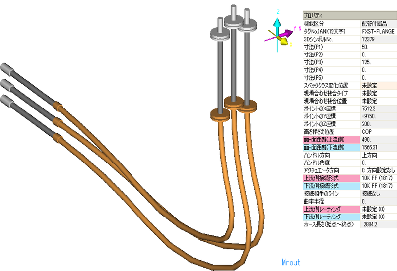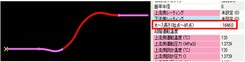 ホース部分を2次選択した時、プロパティにホース長さを表示します。(長さはホース始点からホース終点まで(入力点間)の長さです)