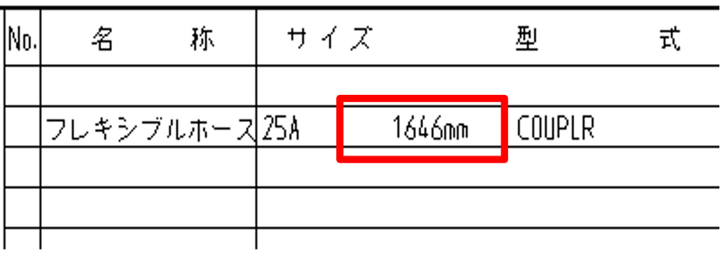 この長さは、スプール図の材料欄の フレキシブルホースの欄にも表示されます。