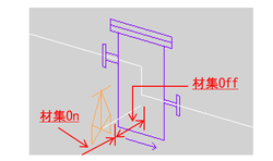 ドレンノズルがある場合は別ラインで入力し高さ、位置を調節します。 V6.90にて追加した材集on/off機能を設定し、ドレンラインを材集から外し、バルブのみの材集に変更します。 |