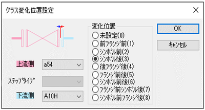 「クラス変化位置設定」ダイアログが表示されるので変化位置とクラスを設定します。