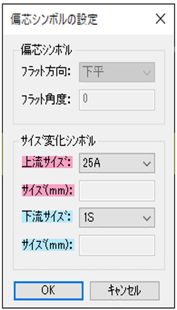 「偏心シンボルの設定」ダイアログよりサイズを設定します。