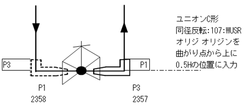 継手や付属品の単品で接続変化を行った事例。および、接続の表記方式。