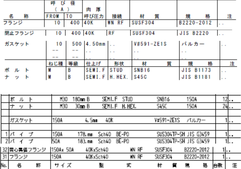 | トーステ | 893 | FLG | 1649 | 10K | 1113 | ※ | BW接続とのアダプタ 接続形式:FLGのフランジアダプタをPMSに定義すると自動でBWの接続変化がセットされ材集はFLGxBWに変化します |