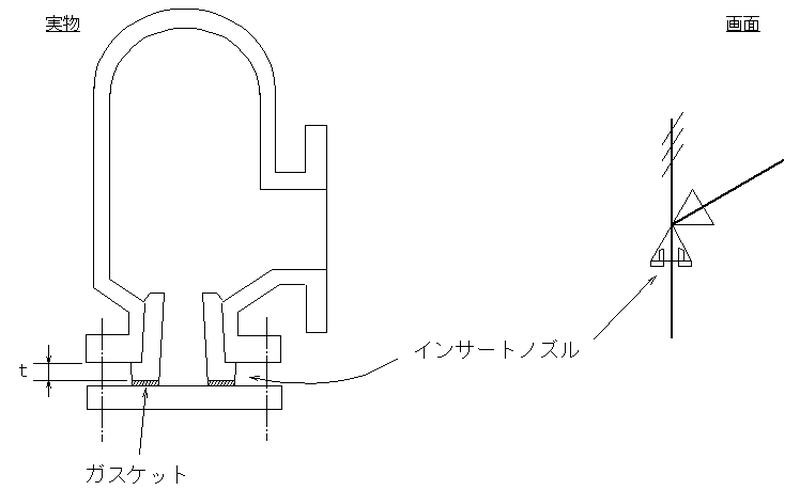 流れ方向に対して後ろ側のエルボの部分にダミーノズルを入力する。 |