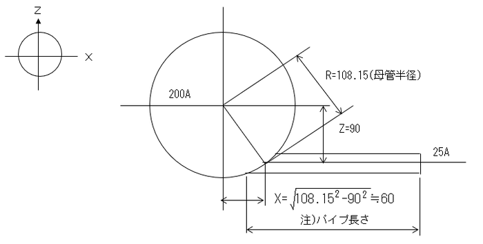 以下のIXODN,IXSDNが90の場合はその属するクラスの直進継手の接続が合致するものの片重長。IXSF=3の場合のIXODN,IXSDNは直接BG(J)FITD内の合致する重長種Codeを参照し、そのSizeW#の寸法値を取得する。94は突合せ溶接ルート間隔長でそのクラスにて設定された長さを参照する。