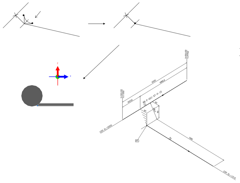 配管モデルを二次選択 -> 配管部品挿入(継手類)-> 機能Codeで"97"をキーインすると、材料集計、スプール図材料欄に"径違いニップル"として集計されます。