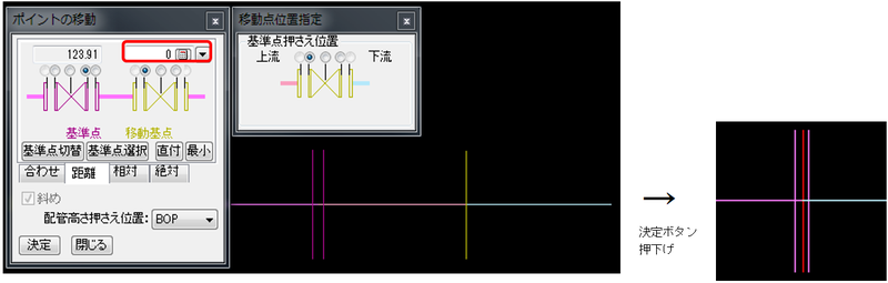 セット部品本体を「別位置」すると、「接続変化」も同じ位置関係で移動します。