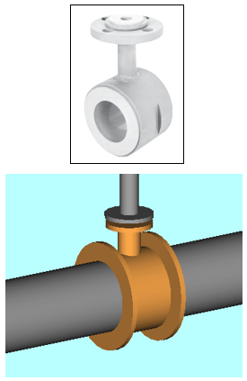 流れ方向に対して後ろ側のエルボの部分に本体を入力する。 |