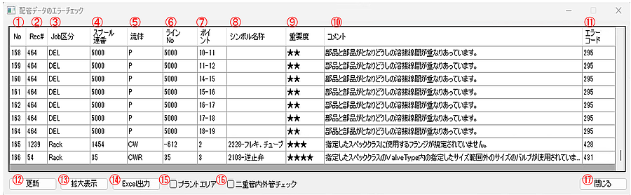 | ⑫ | 更新 | 配管モデルを読み直しエラーチェックリストを更新します |