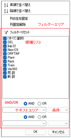 | 候補リスト | フィルタの対象となる候補の一覧が表示。