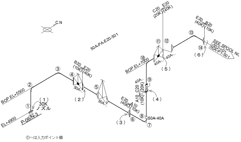 | ③ | Job区分 | 配管に設定したJob区分記号 |