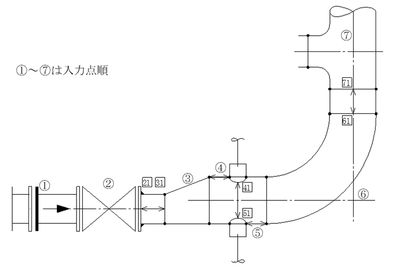 | ! | 配管製作、組立強度的にも問題ないが、設計者の意図的なものと予想されるもの |