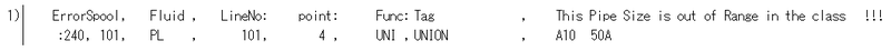 | 87 | 425 | 指定したスペッククラスの使用するガスケットのサイズがそのクラスのサイズ範囲にありません。 | gskthick | |
