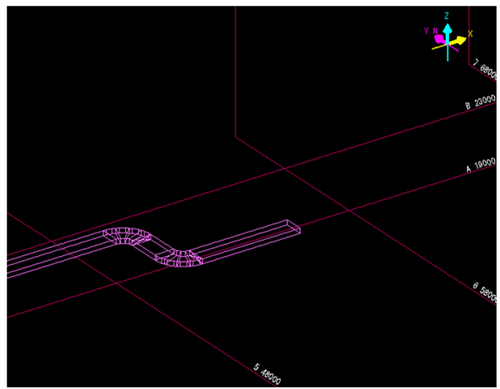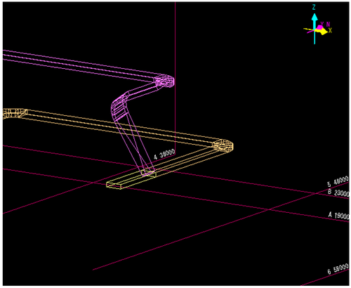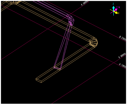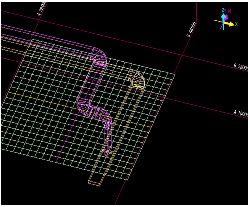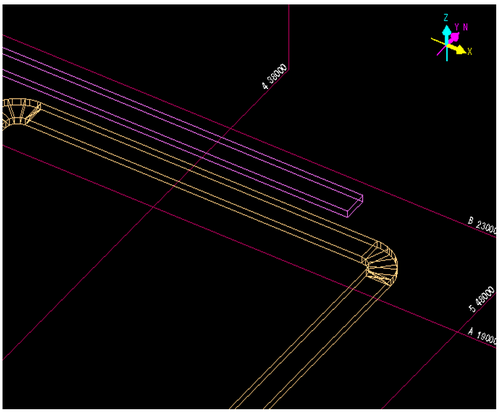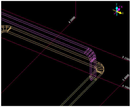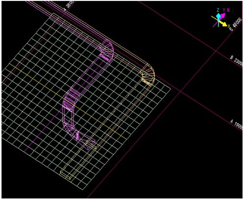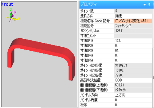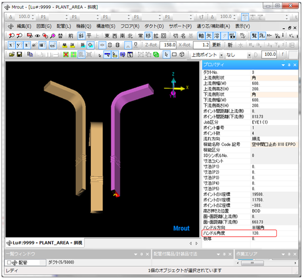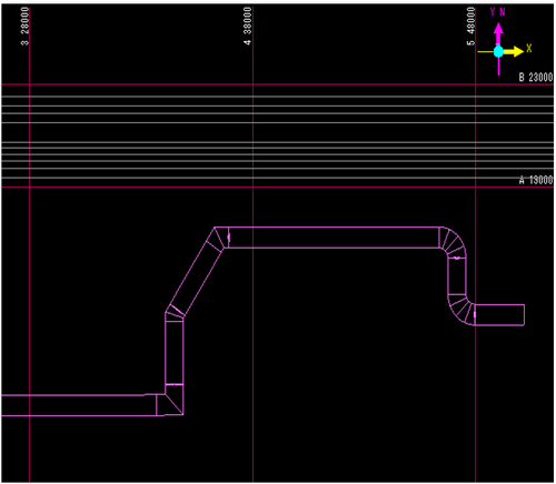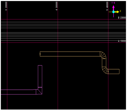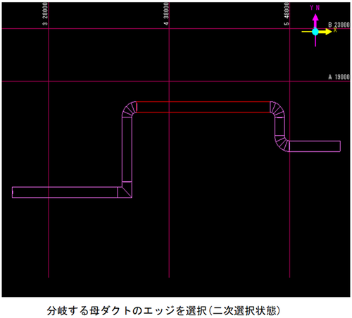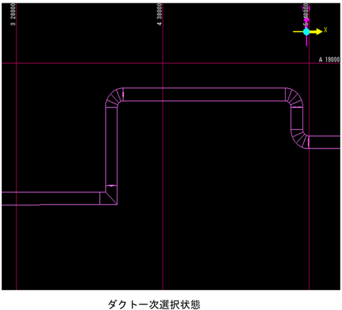 成長してきたダク接続先を決定します。トの入力方向と平行な既設ラインのダクトを左Clickして、接続先を決定します。