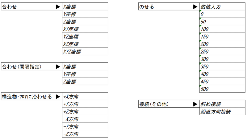 座標値の入力には、絶対座標,相対座標,機器や他のモデルとの合わせの3種類の方法があります。