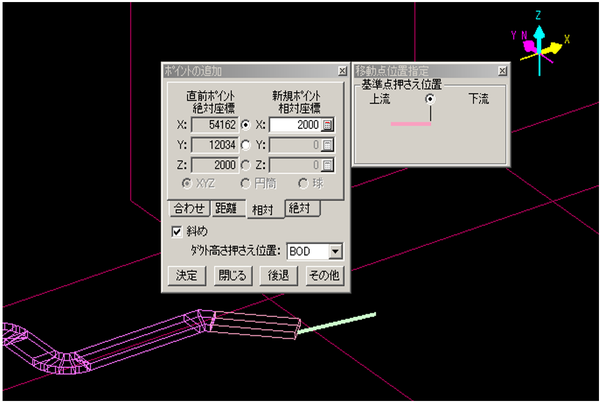 - 新規ポイントにダクト入力を開始する座標値を設定してください。